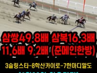 ★(토)제주경마 누락으로 추가 방송,,전주,일요 1147.3배★ 포함 총11개 적중(★부산7개 퍼펙트 적중) 1년 베팅자금,군자금 모두 챙겨드렸다