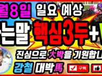 [3월1일 일요결과]@ 쌍식배당적중~노림마6놓고/6-2마권/쌍복방어성공!!@4경주 6운주프린스 - 2학산소드 15.1배 8.3배 (쌍식)강철 서울4R ★강공6/6-3한방/6-2,5방어/삼복쌍6-3,2,5[2월28일 토요결과]@ 연타퍼펙트적중~노림마4놓고/4-1마권/4-1-2조합/삼쌍삼복퍼펙성공!@2경주 4히어로치타-1케이엔빅뱅-2위즈스타 삼쌍20.5배삼복6.5배 4.5배 2.1배 (연타)강철 서울2R ★강공4/4-2한방/4-1,7방어/삼복쌍4-2,1,7@ 추천경주쌍식적중~노림마5놓고/5-8마권/쌍복방어성공!@제주3 5힐링대륙 - 8아그베 15.6배 7.3배 (추천)강철 제주3R ★강공5/5-10한방/5-8,4방어/삼복쌍5-10,8,4